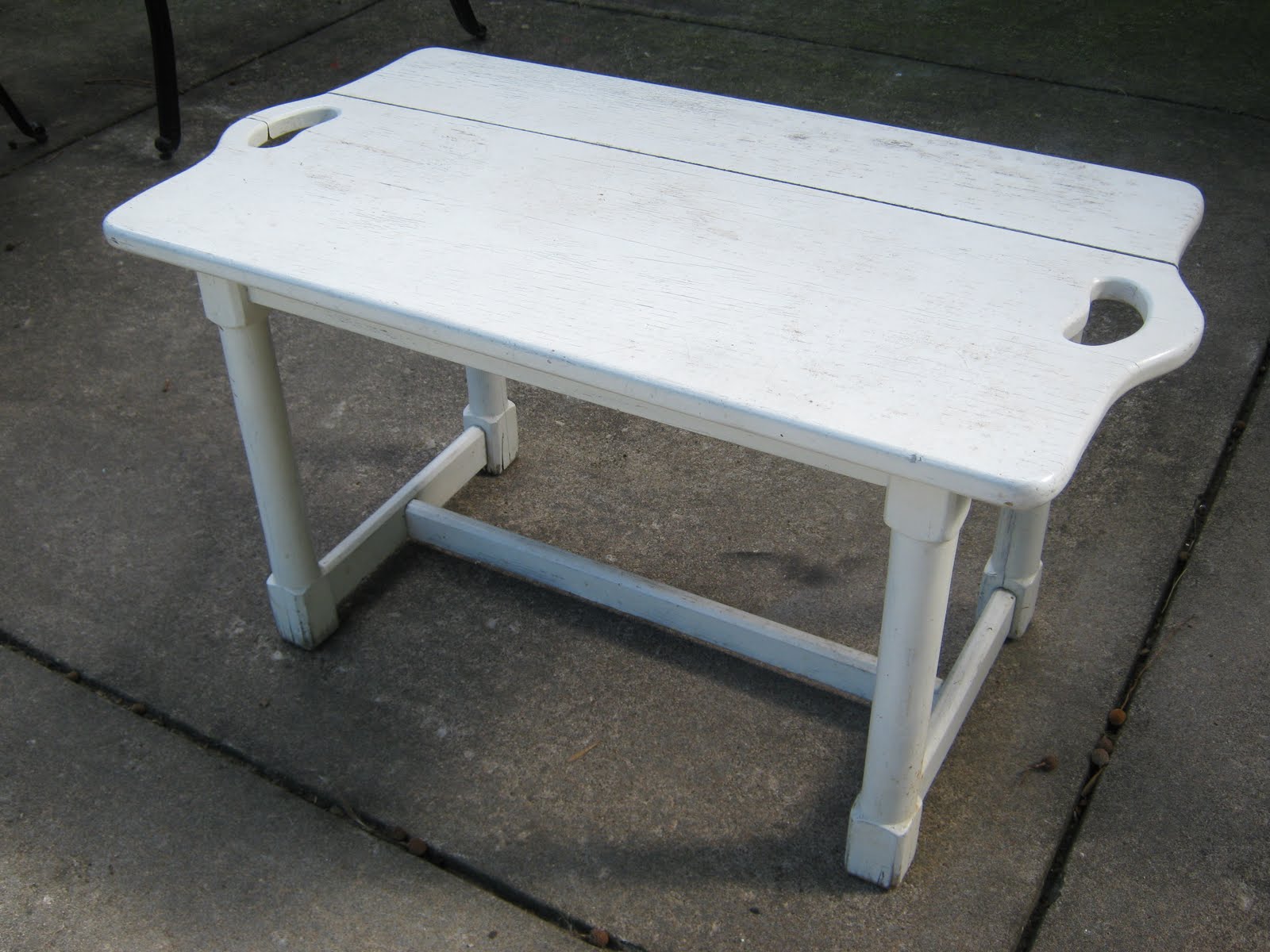And my mom found this great table at a sale a couple of weeks ago. It needed some TLC and a color transformation to go into her kitchen hearth space.